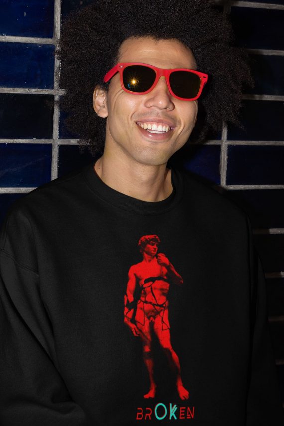 Representation of the biblical myth of David against Goliath, we have the famous sculpture of Michelangelo, David. The creation of this work represents the best of the human being, but the greatest characteristic of the human being is not to be perfect, but quite the opposite, it is to err and still overcome adversity, make mistakes to learn from them and not just continue Go ahead, also be content with the fact of having made those mistakes. Next to the image there is a play on words in English, the word “O.K” stands out within the word “broken” which means broken.