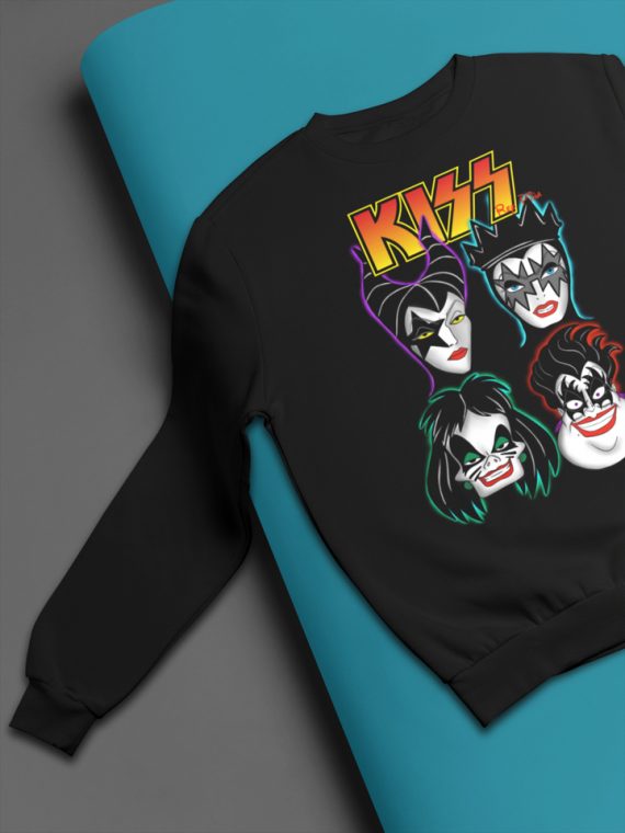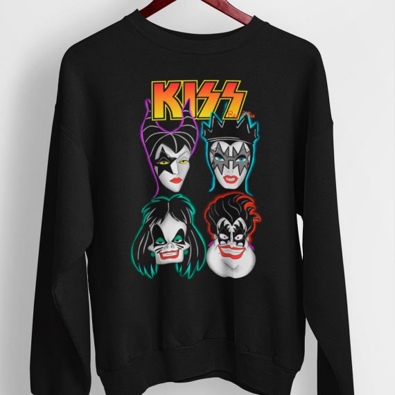 Parody of the mythical rock band, KISS, whose members used the cultural currents of Glam Rock, to make their image a seal, a recognized brand. Here the original components are replaced by the most famous group of villains of the Disney brand.