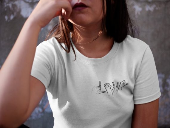 Reprentación de la palabra Love, (amor), con las manos, cada mano dibuja una letra que forman la palabra.