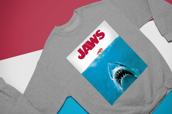Parody of the iconic poster of the movie Tiburon by Steven Spielberg, but here the Little Mermaid replaces the figure of the original swimmer.